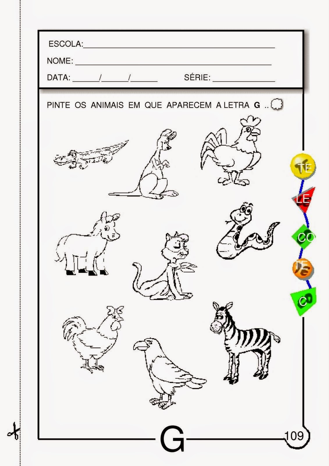 Baixar atividades com a letra G / Atividades letra G para imprimir / exercícios com a letra G para 1º e 2º ano / letra g para 5 e 6 anos.